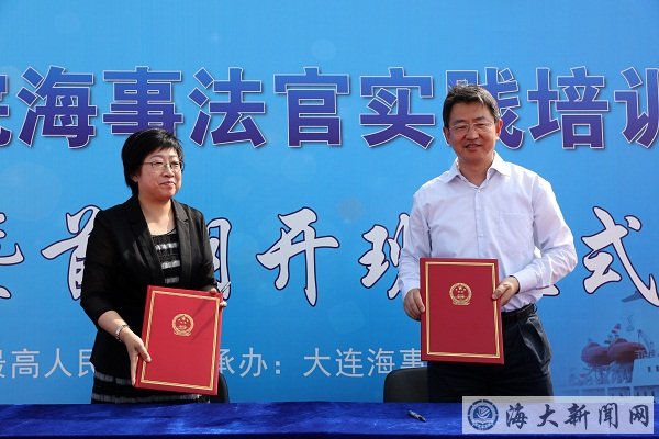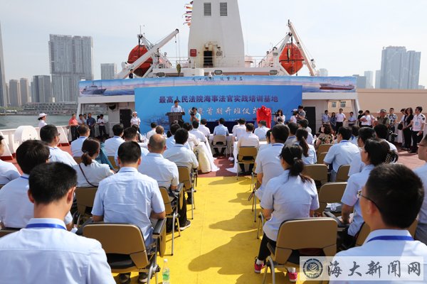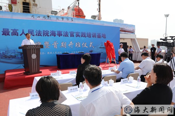 6月15日,由最高人民法院主辦、大連海事大學承辦的 “最高人民法院海事法官實踐培訓基地”揭牌暨首期開班儀式在“育鯤”輪舉行。